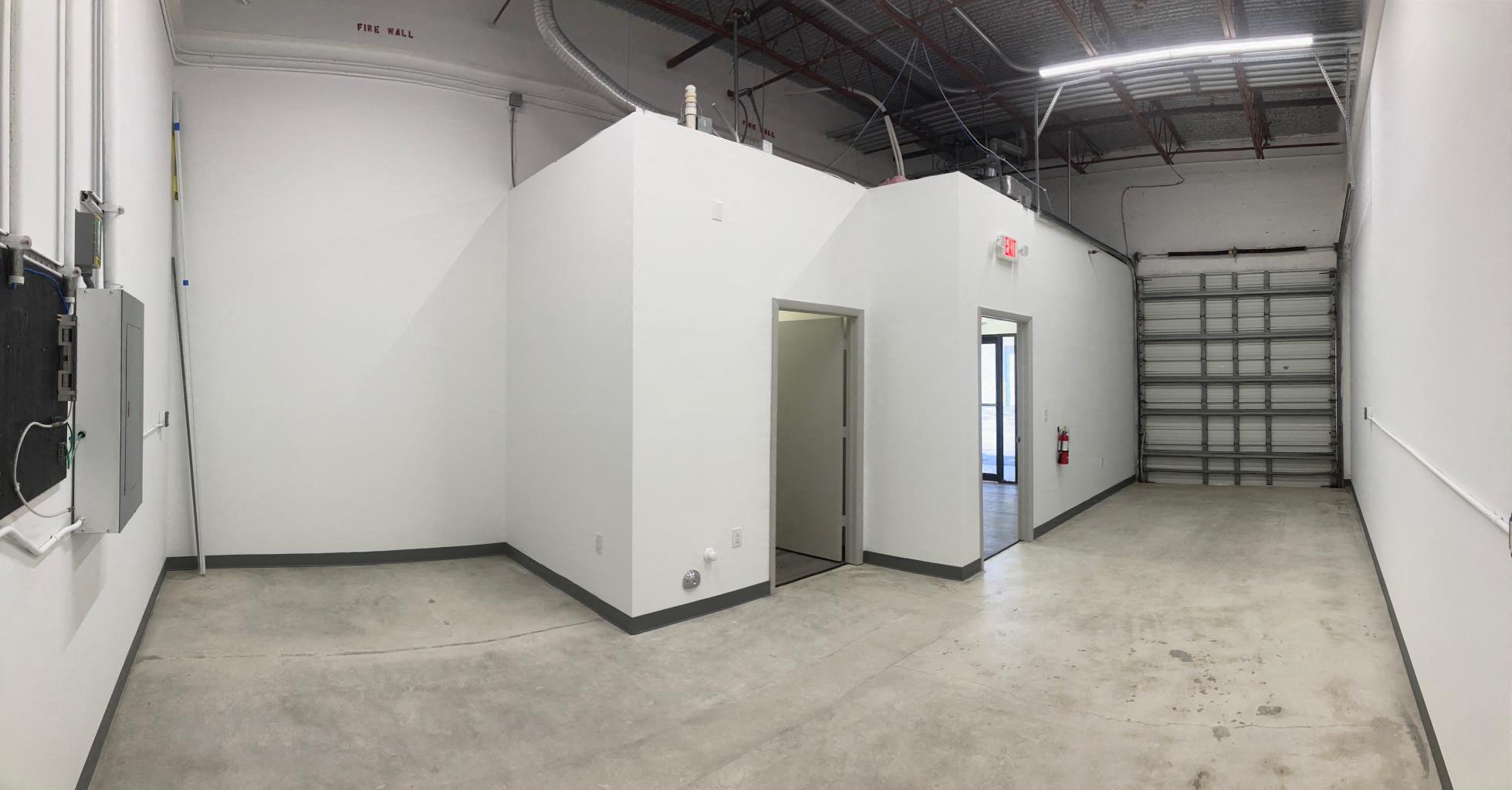 Office area features LED lights and LVT flooring. Warehouse area features polished floors, LED lights, a private restroom and a grade level roll-up door. 24 hr access.