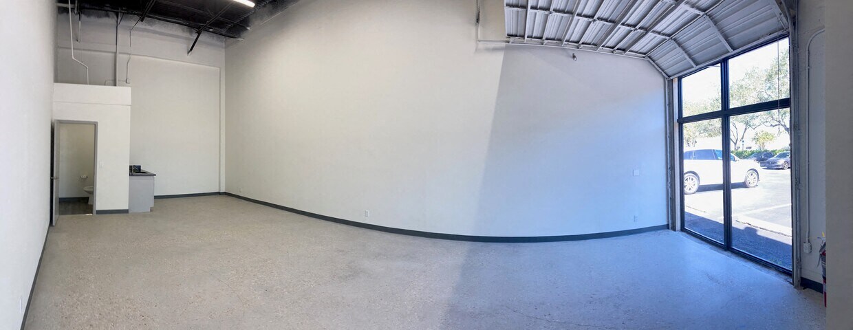 CLIMATE-CONTROLLED WAREHOUSE WITH A LARGE WINDOW. This space features polished floors, LED lights, a small kitchenette, a private restroom and a large window for natural light. 24 hr access.