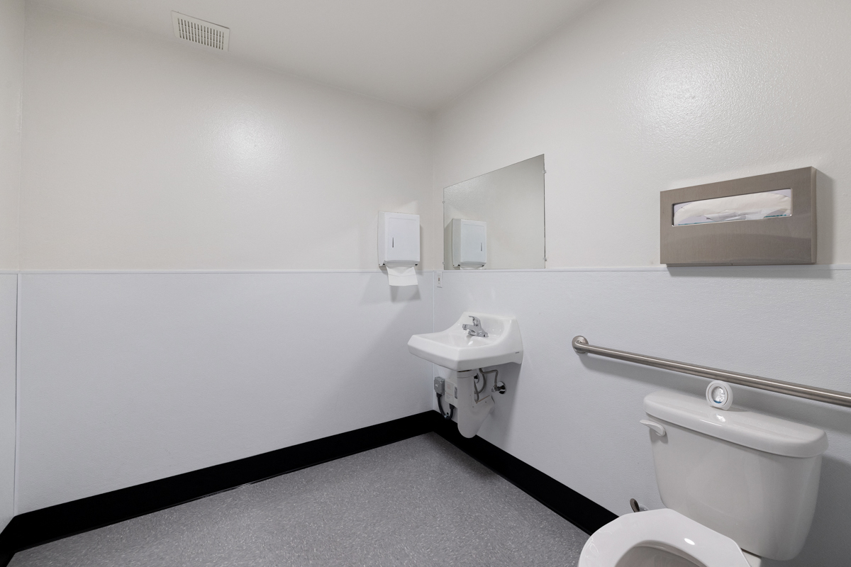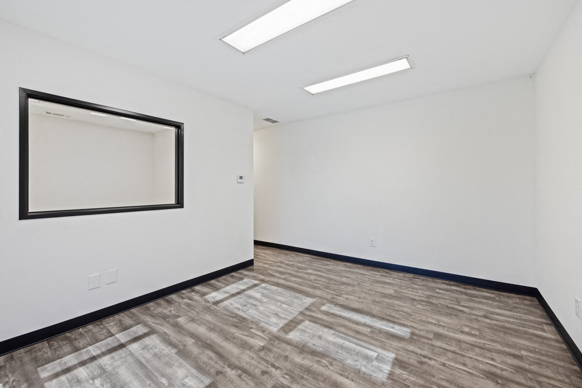 Reception, 2 private offices, restrooms and large warehouse ground level loading door