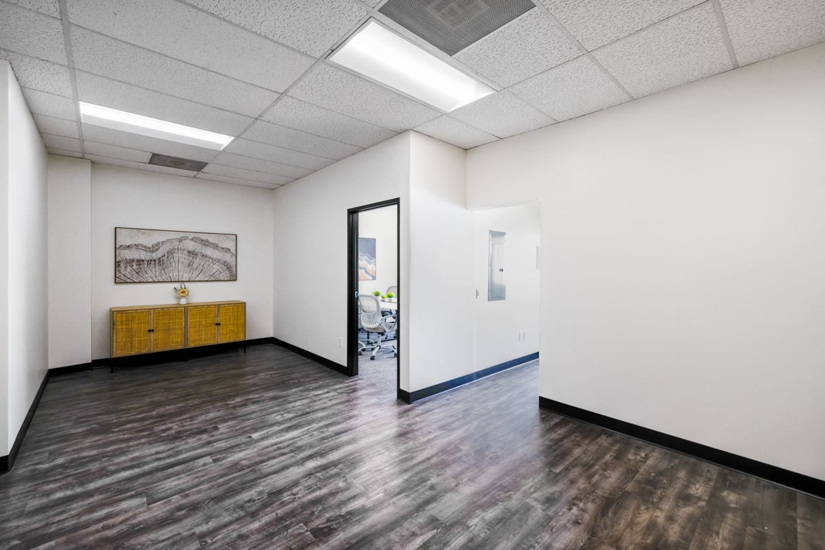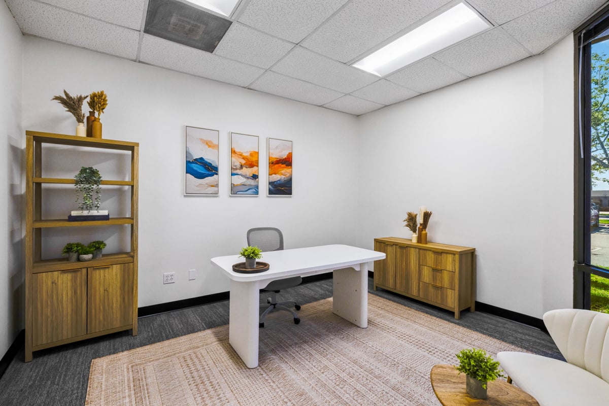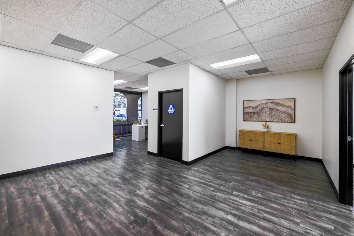 One-story office - Open area/reception, with a kitchenette, two (2) private offices and a private restroom