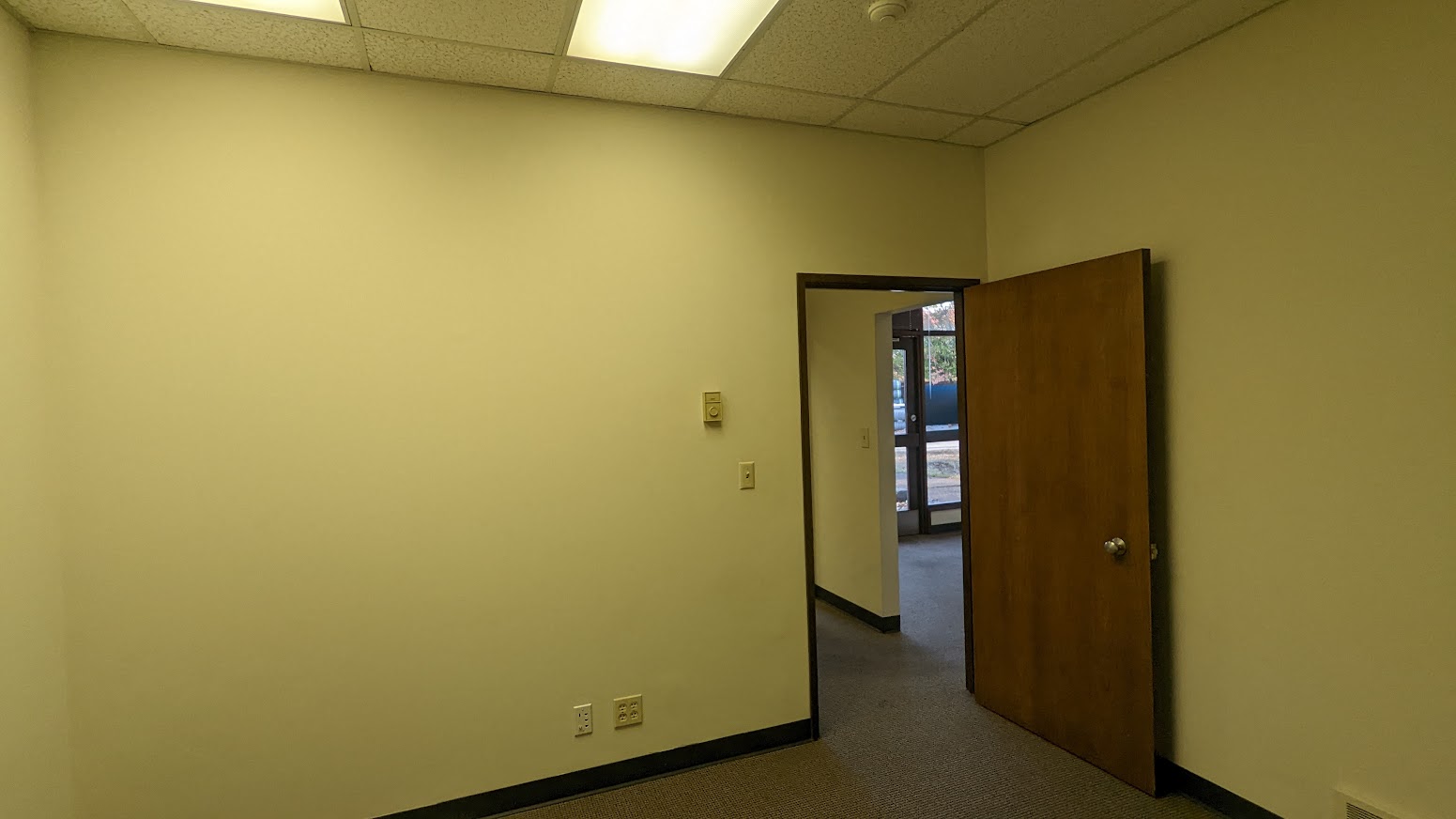 Reception, 2 private offices, 1 conference/lab room, warehouse with GL door
