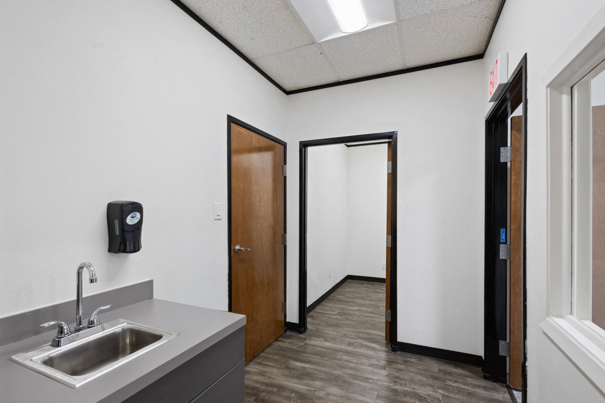 Reception area, 2 offices, BR, RR, storage closet, WH w/ main door