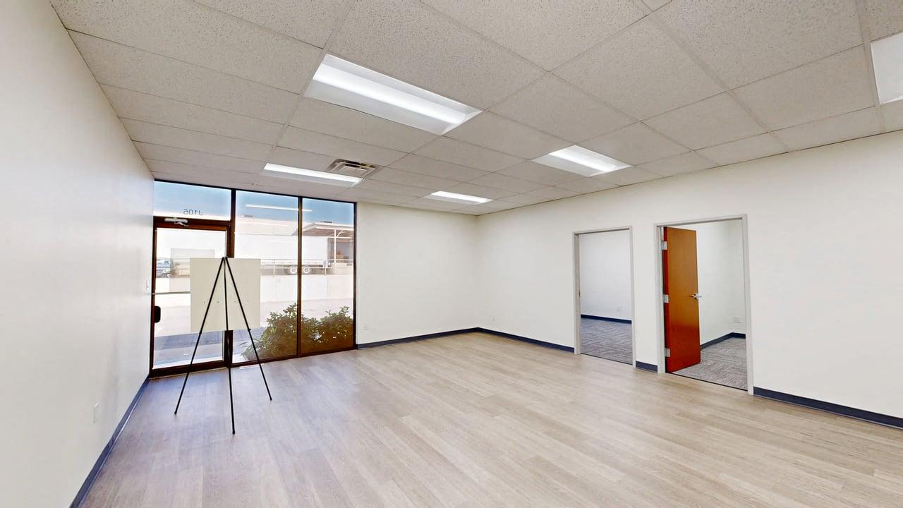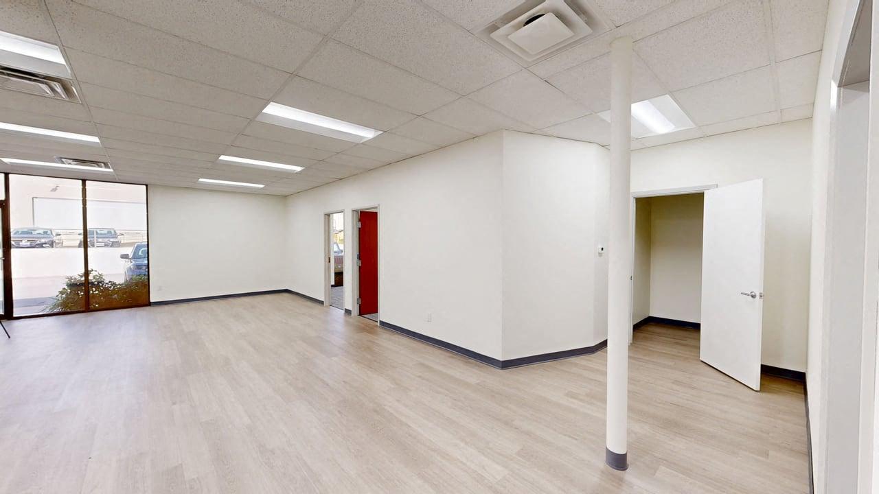 Large open area, 2 offices, 2 restrooms, large open work area with breakroom in back