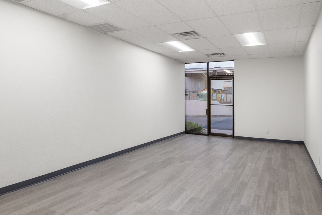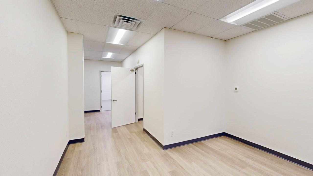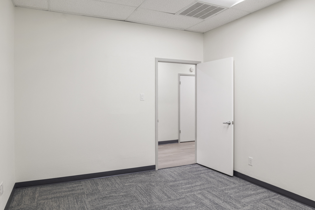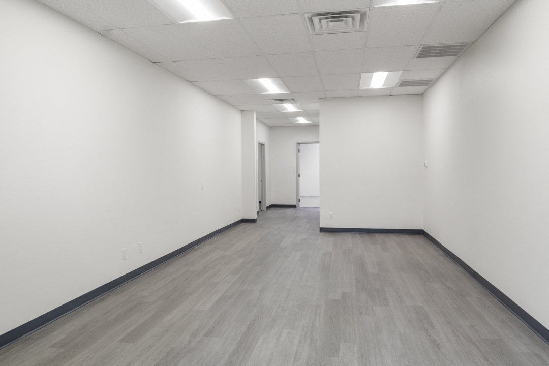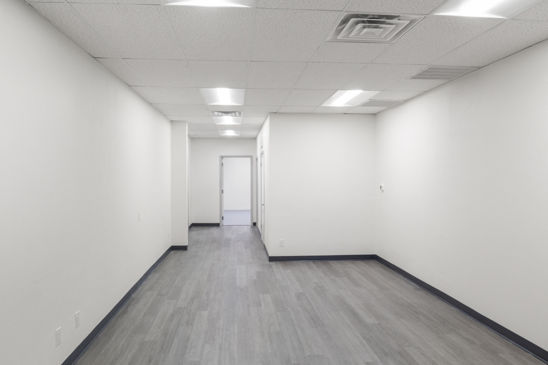 Reception area, open work area, 2 offices, RR, BR, small WH with OHD