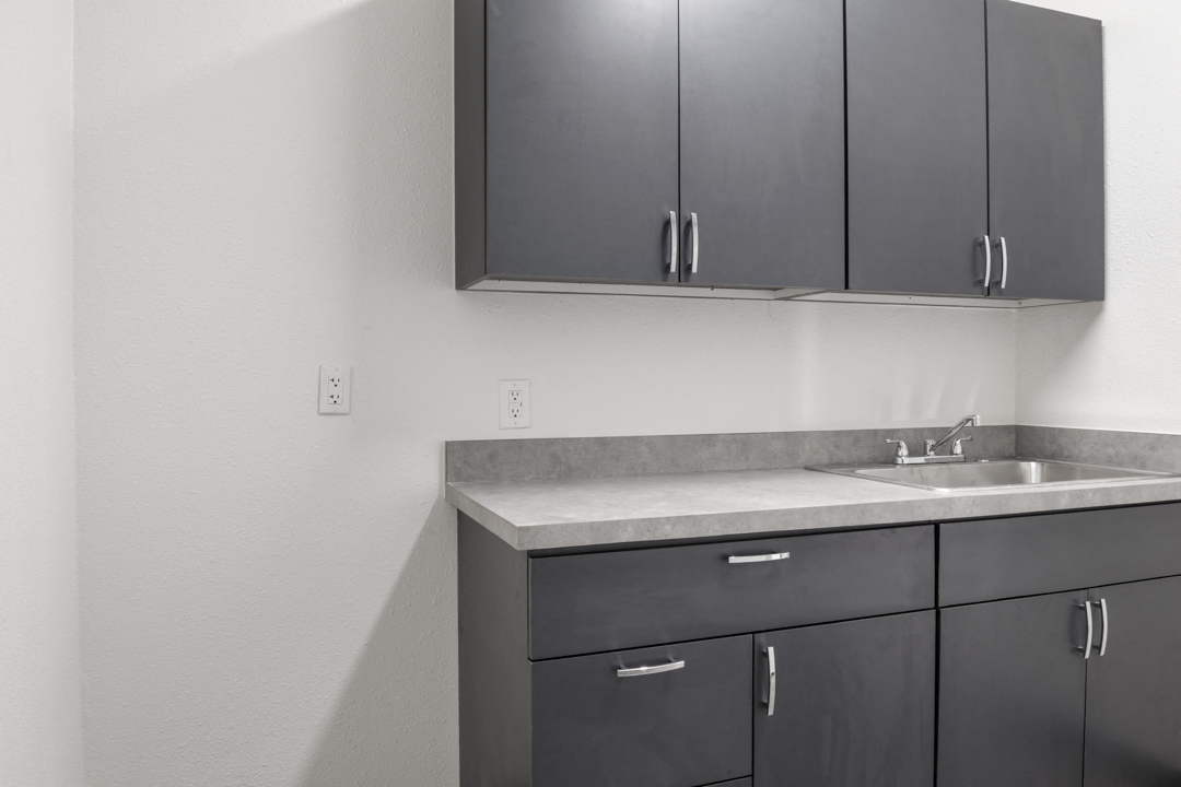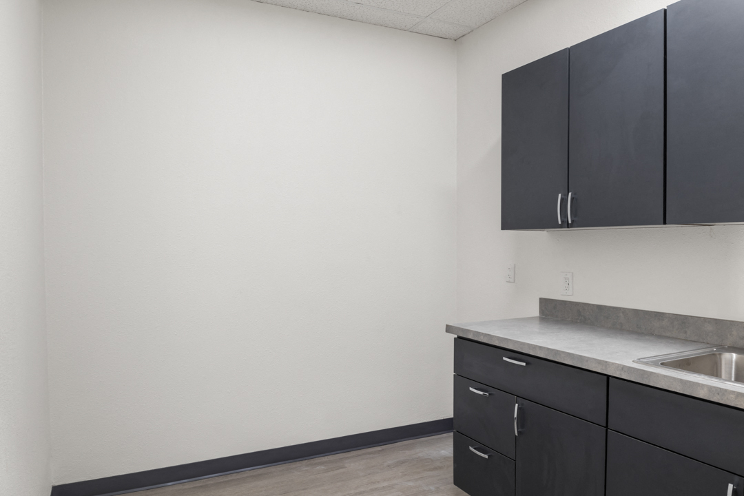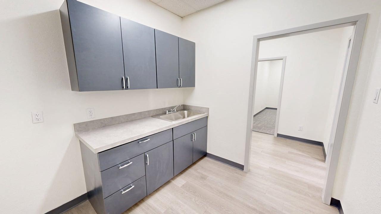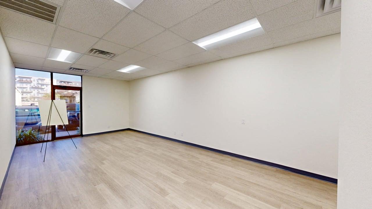 Reception area, open work area, 2 offices, RR, BR, small WH with OHD