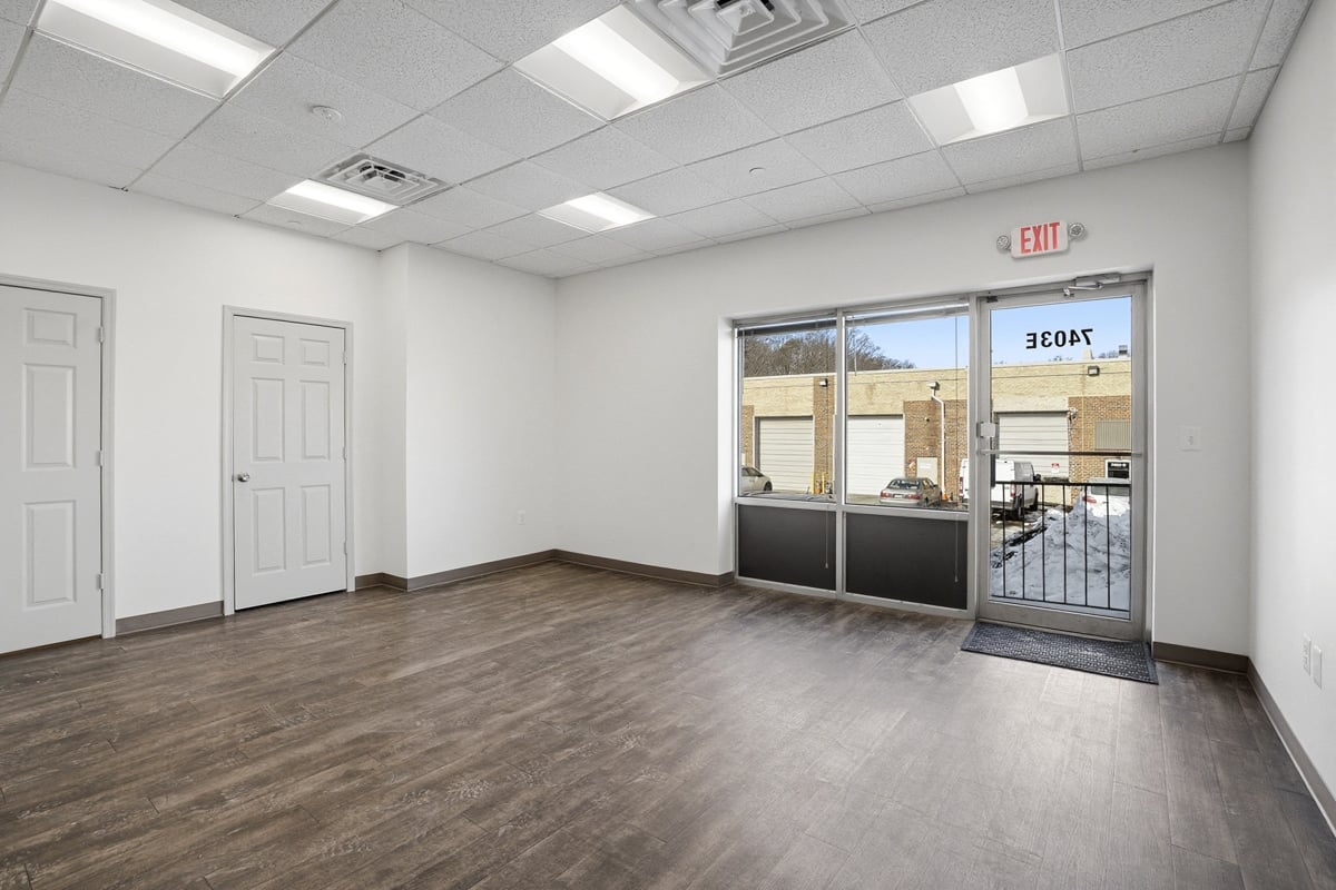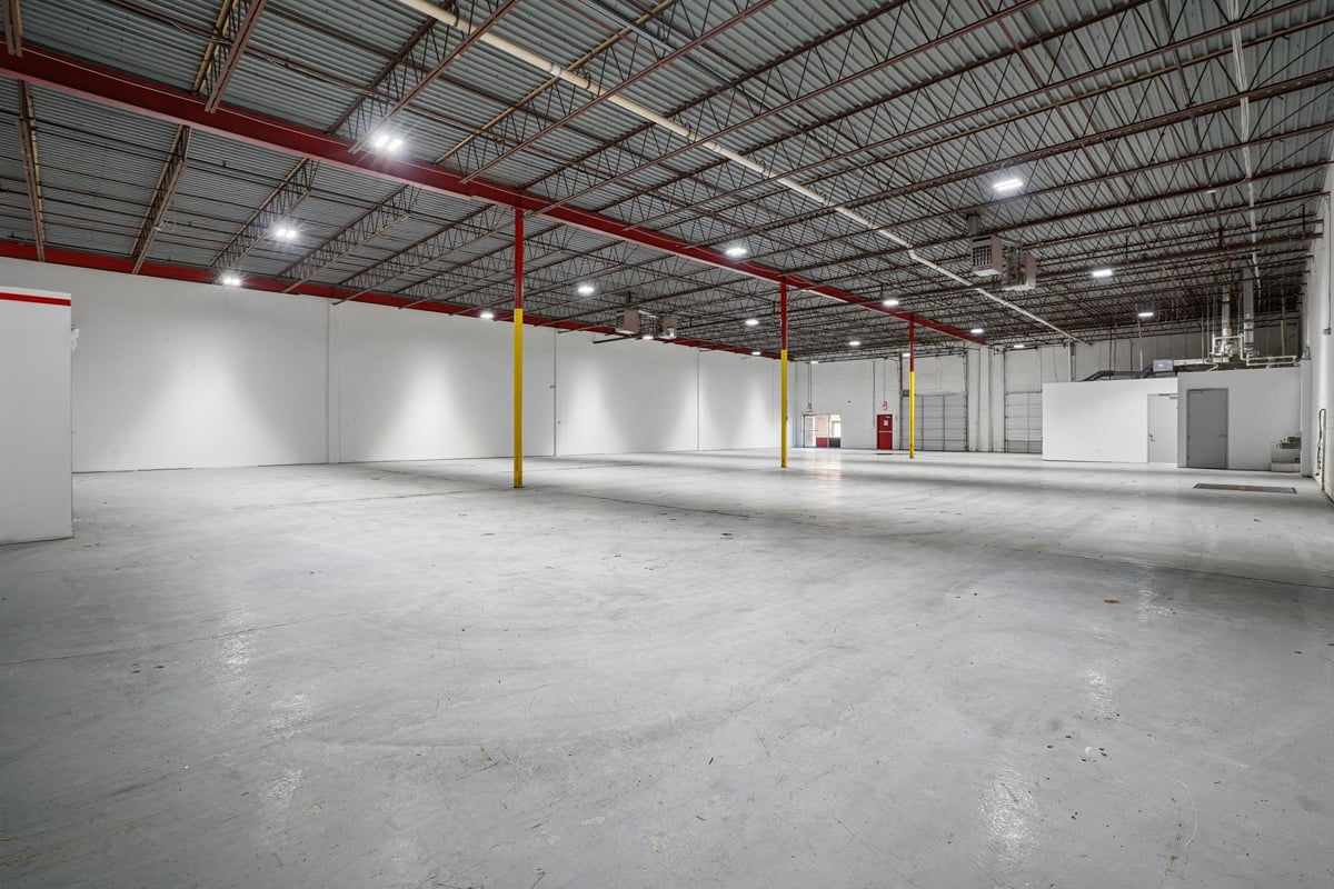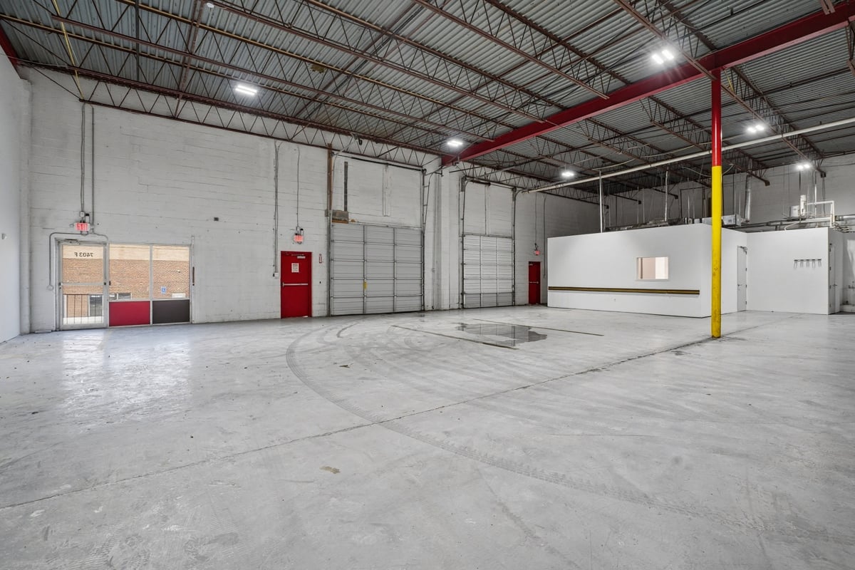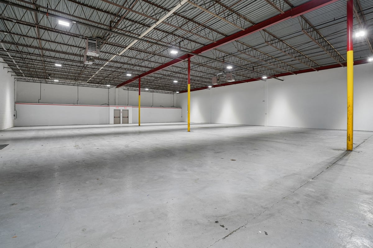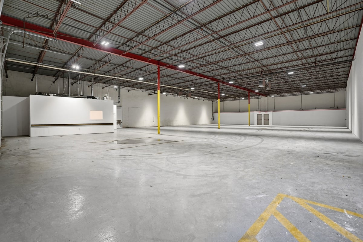 Large open warehouse with two loading docks. Small showroom space with one private office.