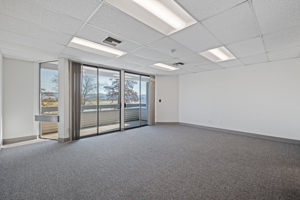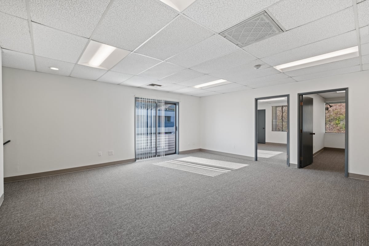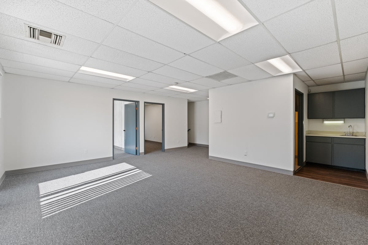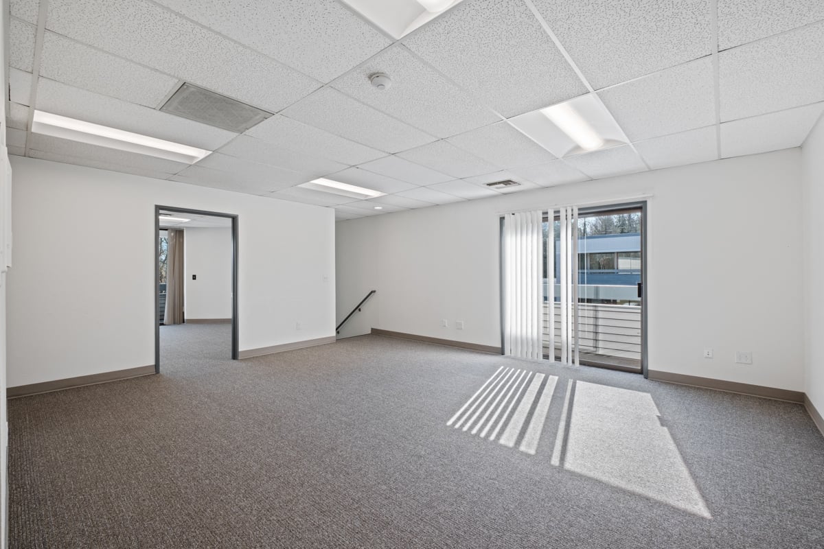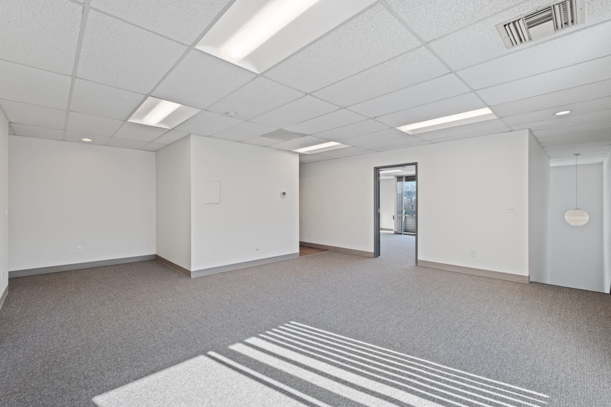 Second floor, open reception area, 2 private offices, and a conference room