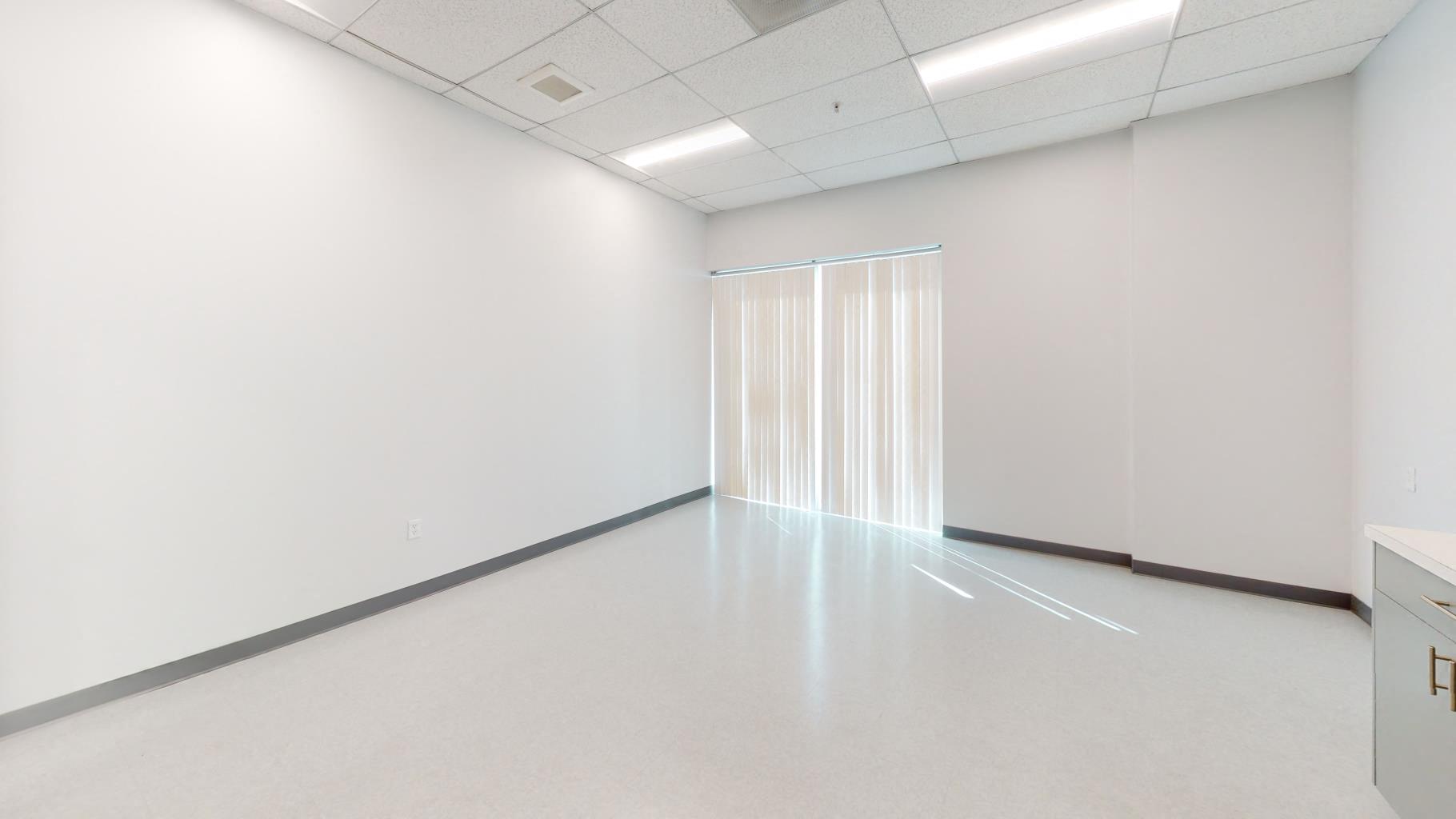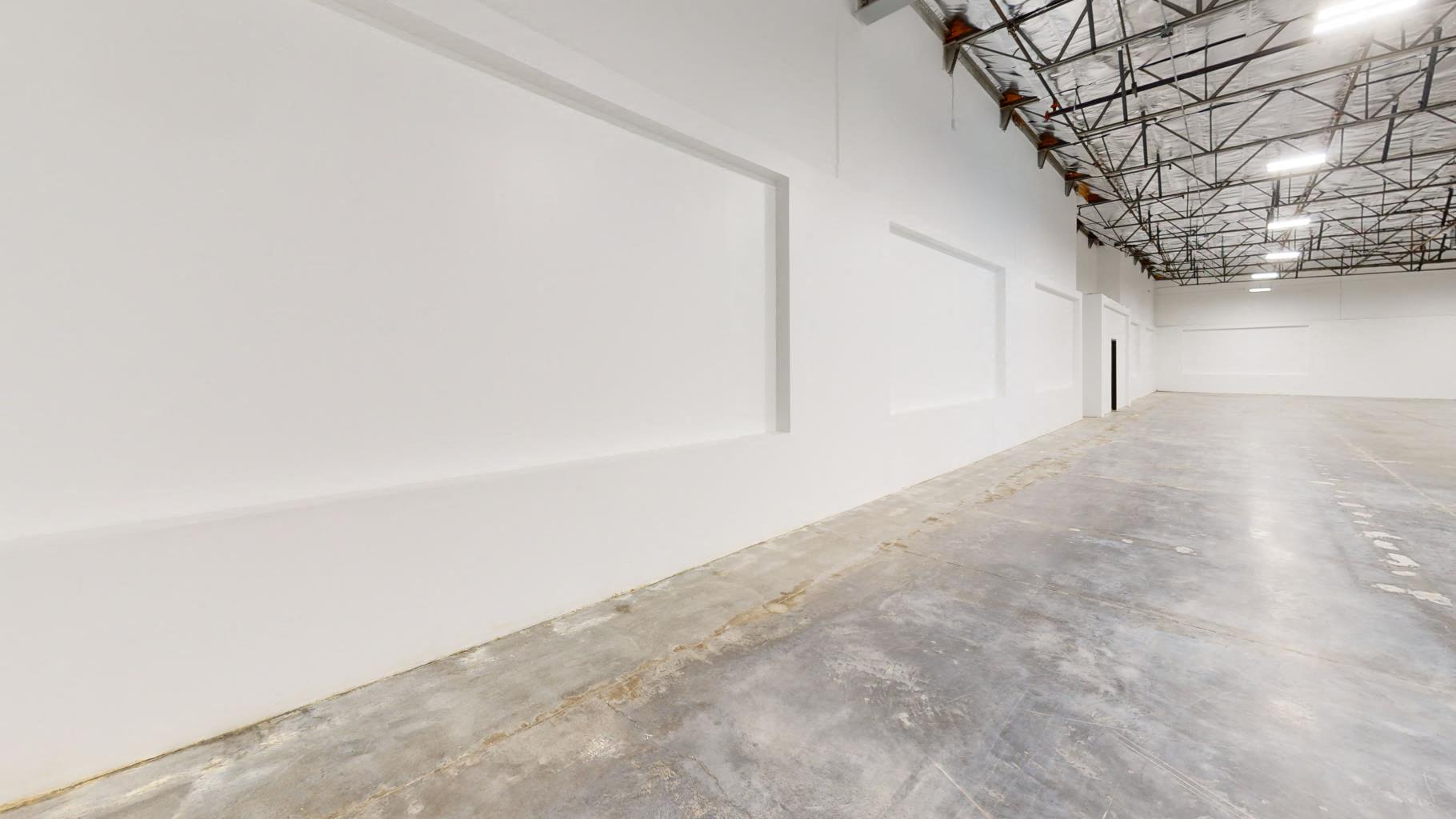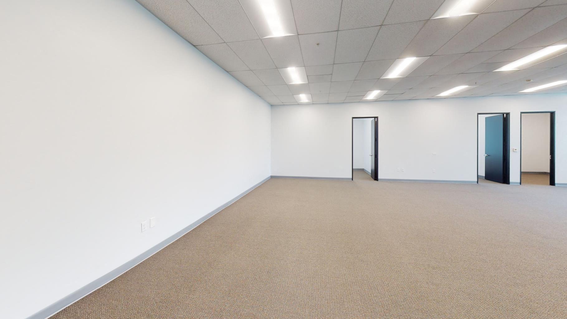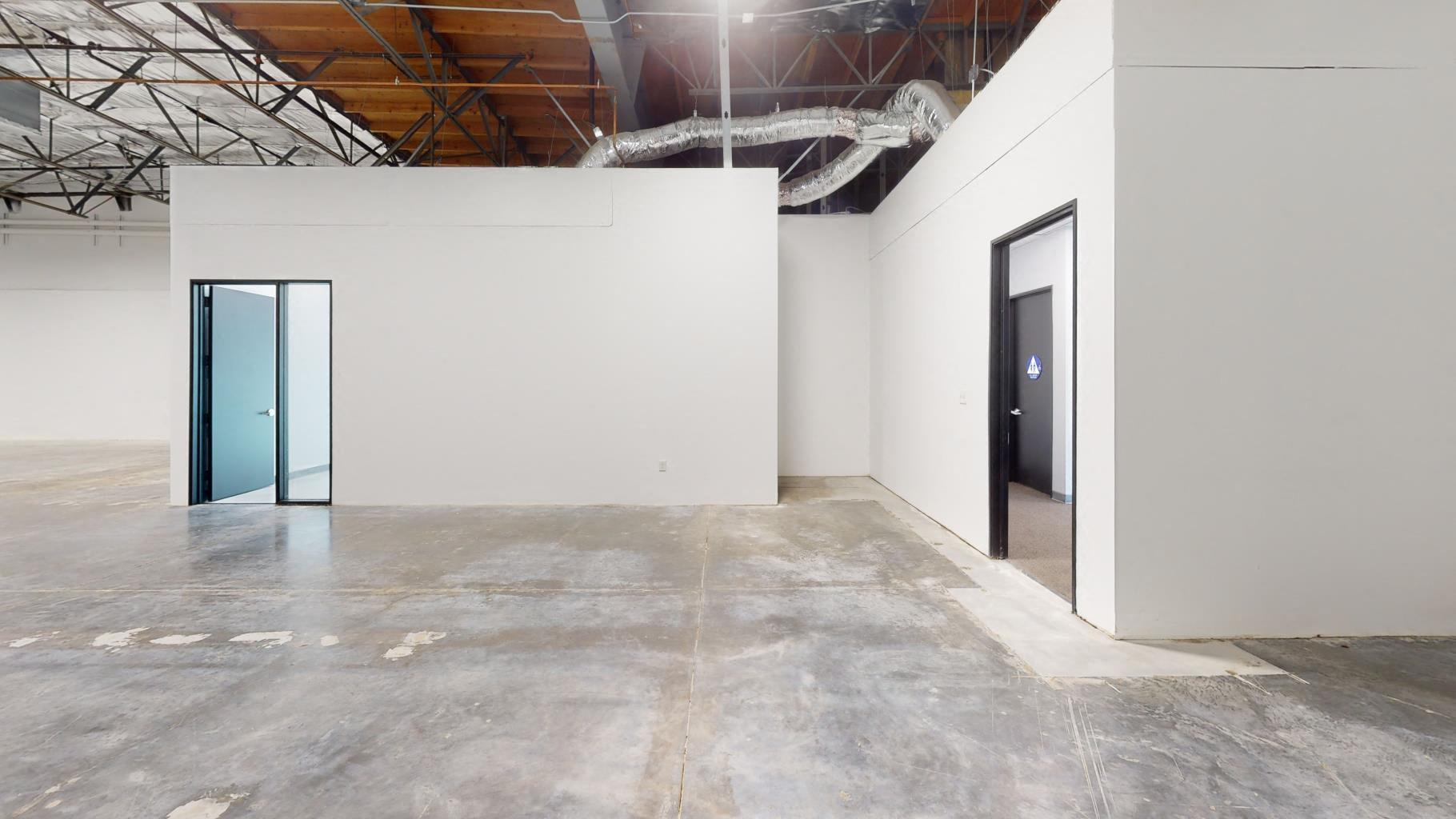 Reception, three private offices, large open area, two restrooms, kitchen, warehouse
